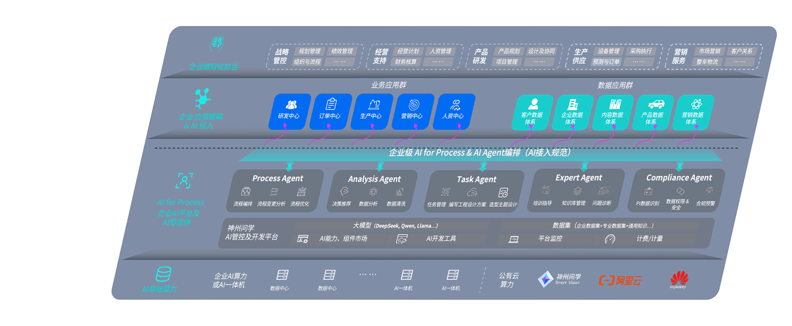 AG百家家乐问学智车解决方案是一套基于AI技术的汽车行业智能化系统,,,覆盖从底层算力到顶层AI应用的全栈方案。。。方案由算力层、、模型层和应用层组成:算力层,,,,方案支持多种一体机配置,,,,具备云端灵活部署、、、、多云适配以及动态优化计算资源的能力;模型层,,AG百家家乐问学平台版提供了企业级AI应用一站式构建与管理平台,,,,支持基于后训练强化技术的汽车企业专属模型的训练、、、评测和运营;应用层,,,AG百家家乐问学DeepSeek版提供包括超级员工、、、、智能招采、、、、智能营销、、、智能客服、、、AI for BI等一系列解决方案,,可助力汽车行业实现数字化转型,,,让管理更智能、、响应更敏捷。。。
